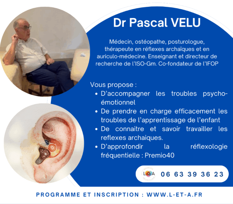 La formation Réflexologie Auriculaire Avancée, organisée par L & A Formations et animée par le Dr Pascal Vélu, est destinée aux praticiens et réflexologues souhaitant approfondir leurs compétences en auriculothérapie et techniques réflexes avancées.